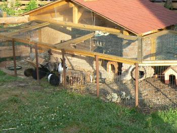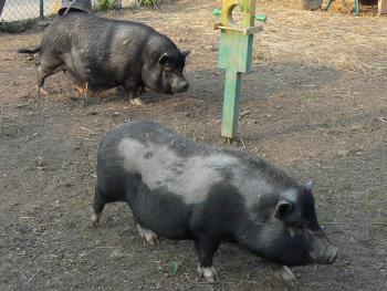 Zwei Hängebauchschweine begrüßen den Besucher und der Kanninchenstall freut jedem Kind.